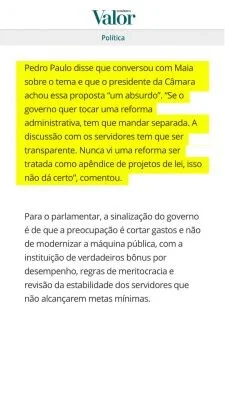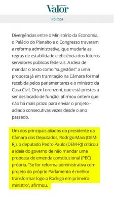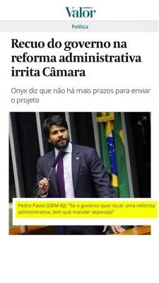 Segue a matéria que saiu no Valor Econômico de hoje, que reproduziu o discurso que fiz no plenário sobre o recuo do governo em relação à Reforma Administrativa.