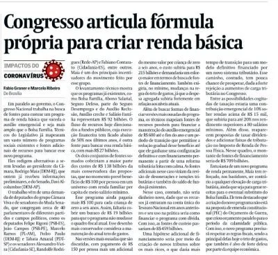 Junto com outros deputados, criamos o Câmara Viva, um grupo que vem trabalhando muito com o objetivo de encontrar fontes para custear um programa de renda básico, que continue após o auxílio emergencial e seja mais amplo que o Bolsa Família. Somos parlamentares de diversos partidos e campos políticos que estamos trabalhando juntos, em mais uma iniciativa para ser apresentada ao governo.