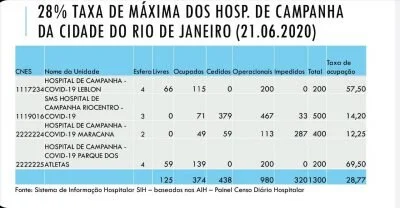 O pior desempenho é do Hospital de Campanha do Riocentro, que dos 500 leitos prometidos não ocupou mais de 113. E custou cerca de R$200 milhões.