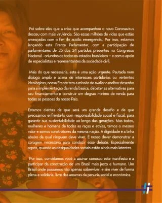 Lançamos hoje a Frente Parlamentar Mista da Renda Básica, um movimento suprapartidário com 23 partidos, 215 parlamentares e a participação de mais de 160 organizações civis, que busca centralizar os debates para a construção de um programa de enfrentamento das desigualdades. O objetivo é centralizar os debates sobre o tema da renda básica, discutindo inclusive as propostas que sejam apresentadas pelo Governo Federal. Ainda completam o corpo técnico a Rede Brasileira de Renda Básica (RBRB) e representantes da Unicef, Oxfam Brasil e Central Única das Favelas (CUFA).